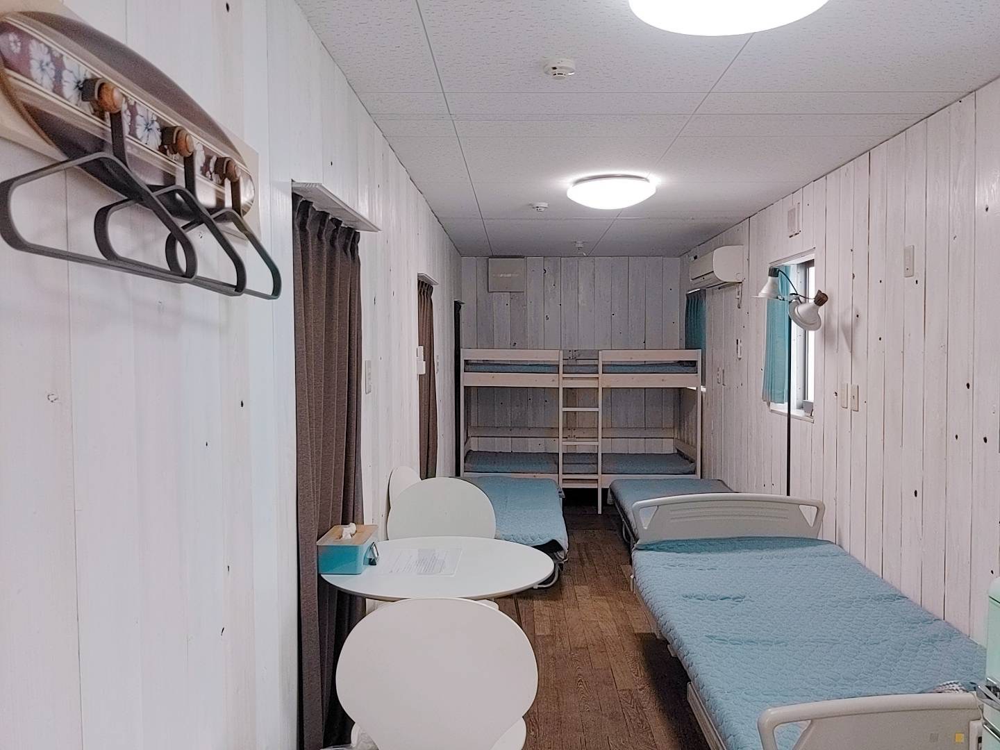 - 2段ベッド2名+ベッド2名+電動ベッド1名